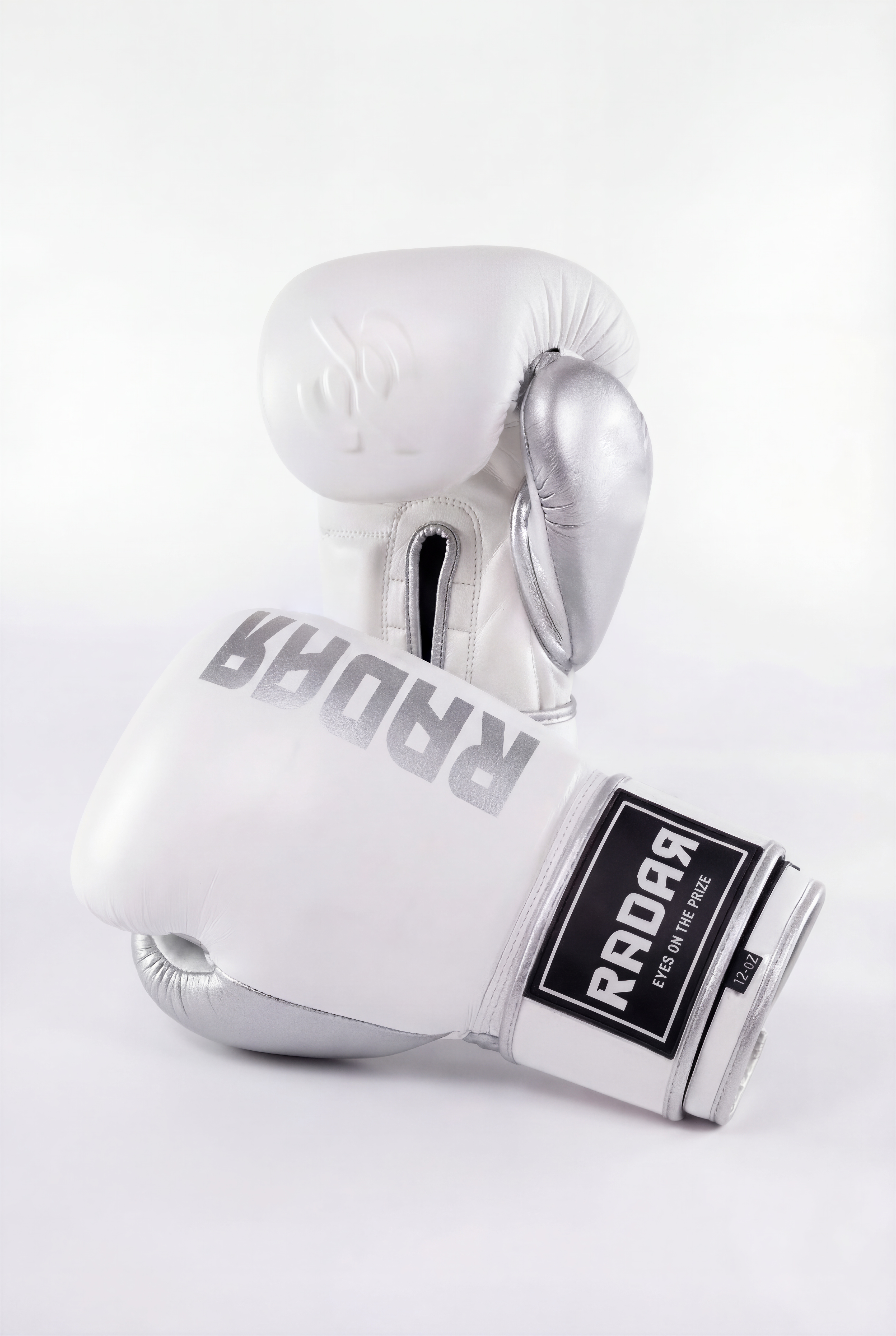 Radar Boxing Gloves – Silver | Pro-quality Genuine Leather for Boxing & MMA
